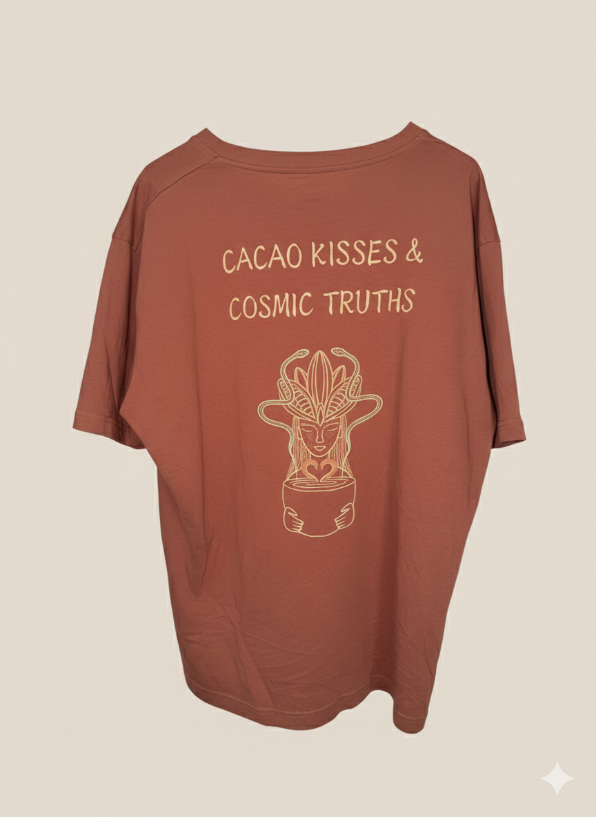 “CACAO KISSES & COSMIC TRUTHS” unisex regular cut t-särk, 100% orgaaniline puuvill